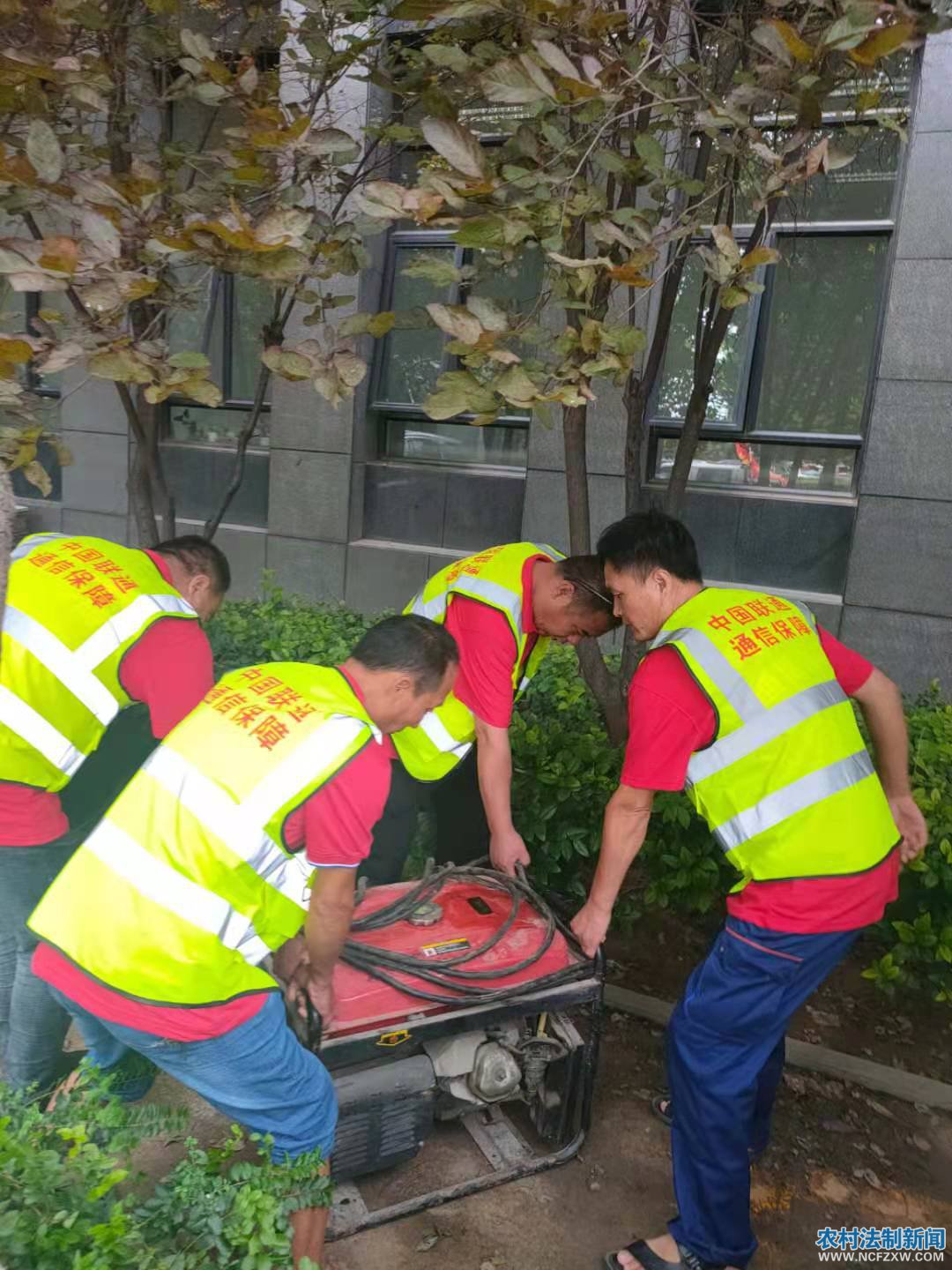 根据省、市公司的统一部署,7月23日上午虞城联通分公司派出崔红兵、祝海燕、王党等技术人员,2辆皮卡车,携带4台10千W移动发电机,组成救灾抢险突击队,在确保自身安全的情况下,全 力驰援郑州。一路奔波下午抵达郑州后,第一时间被分配到受灾区域进行通信保障,有些区域积水较深车过不去,突击队员就徒步背着光缆,抬着发电机对中断的基站进行紧急恢复。