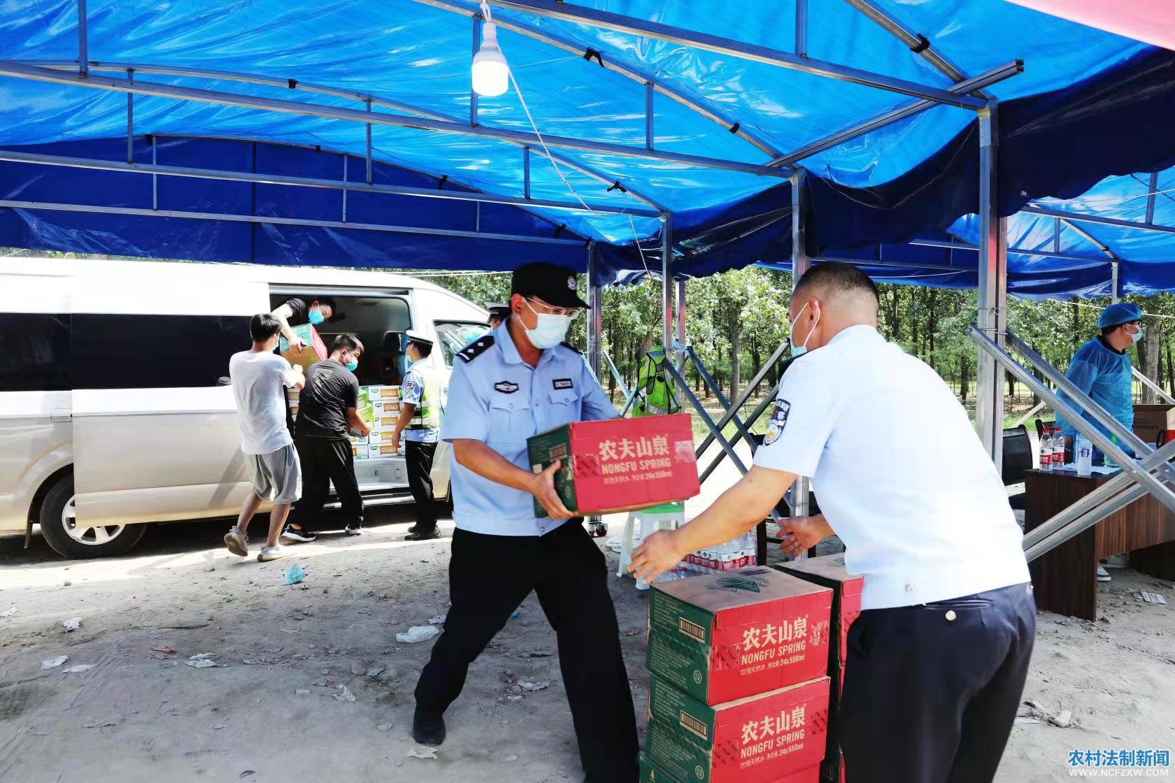 日前,民权县公安局到全县七个疫情检查站,望、慰问坚守在烈日高温下和疫情防控风险一线执勤的工作人员,共捐赠牛肉面、香肠、面包、纯净水175箱。