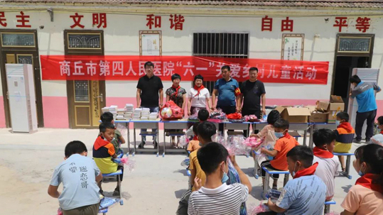 6月1日,“六一”儿童节当天,商丘市第四人民医院院长孟飞燕带领医院相关负责同志到勒马乡宋破楼村小学开展儿童节走访慰问活动,祝孩子们快乐生活、健康成长,并送去了慰问金和慰问品。