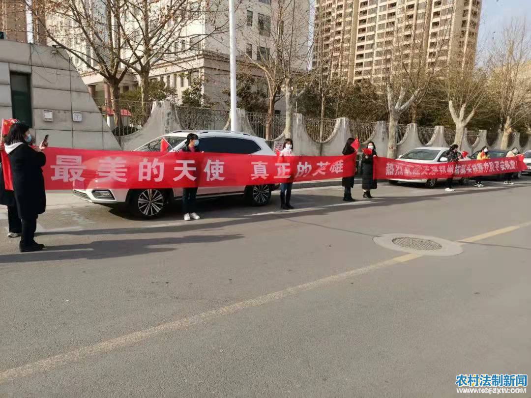 1月15日下午14时,中牟县首批支援郑州核酸检测医疗队员们乘坐的大巴车驶入县卫生健康委,门口“最美的天使,真正的英雄”“不辱使命、不负重托,你们辛苦啦”红色条幅字样格外显眼。