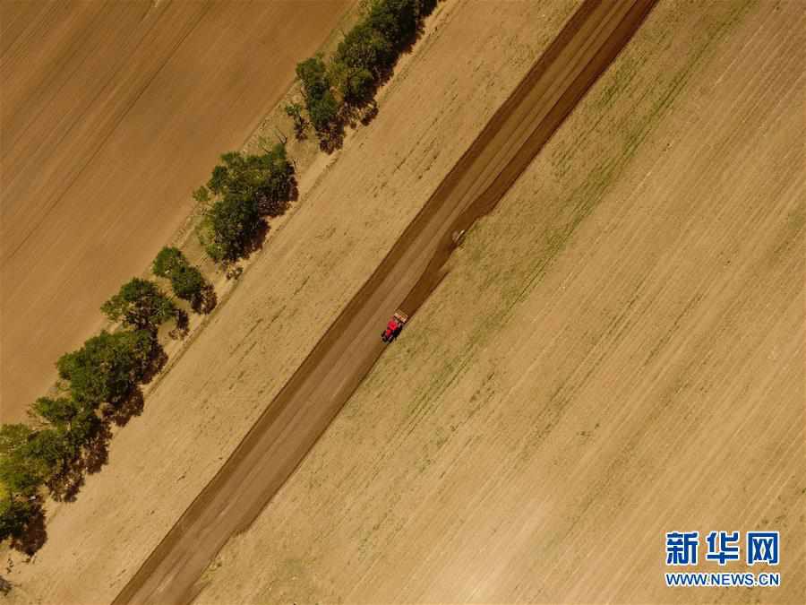 内蒙古乌兰察布市化德县新社村村民在种植“订单燕麦”(无人机照片,2018年5月18日摄)。新华社记者 刘磊 摄