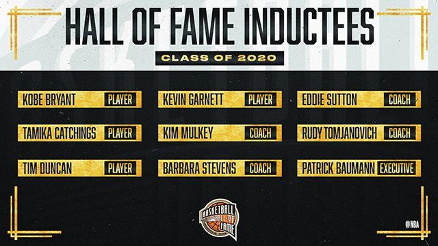 奈-史密斯篮球名人堂今日正式公布了2020年入选的9人名单,科比、邓肯和加内特三大球星领衔。