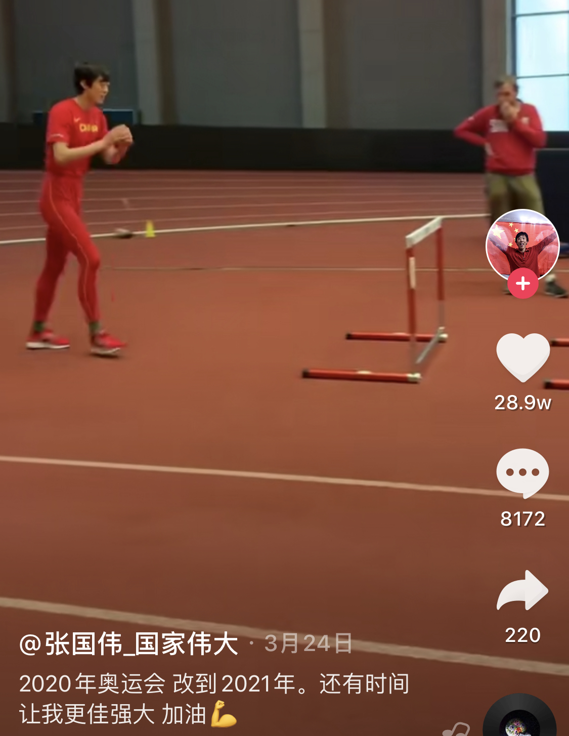 值得一提的是,在今年3月举行的意大利锡耶纳跳高挑战赛中,张国伟跳出2米28的高度,获得亚军。这是他四年以来个人室内跳高最好成绩。