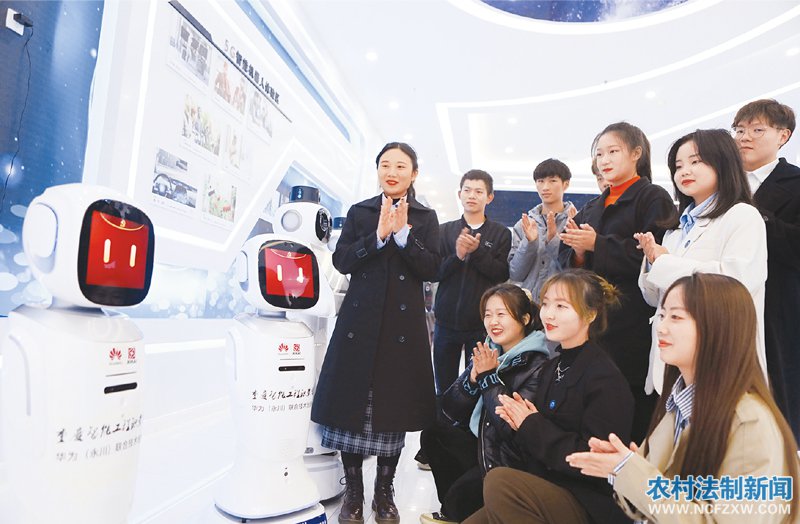 2021年11月13日,重庆智能工程职业学院校园内,智能机器人“大华”、“大智”向学生们普及党的十九届六中全会精神,其可爱的形象和声音,深受学生们的喜爱。 人民图片