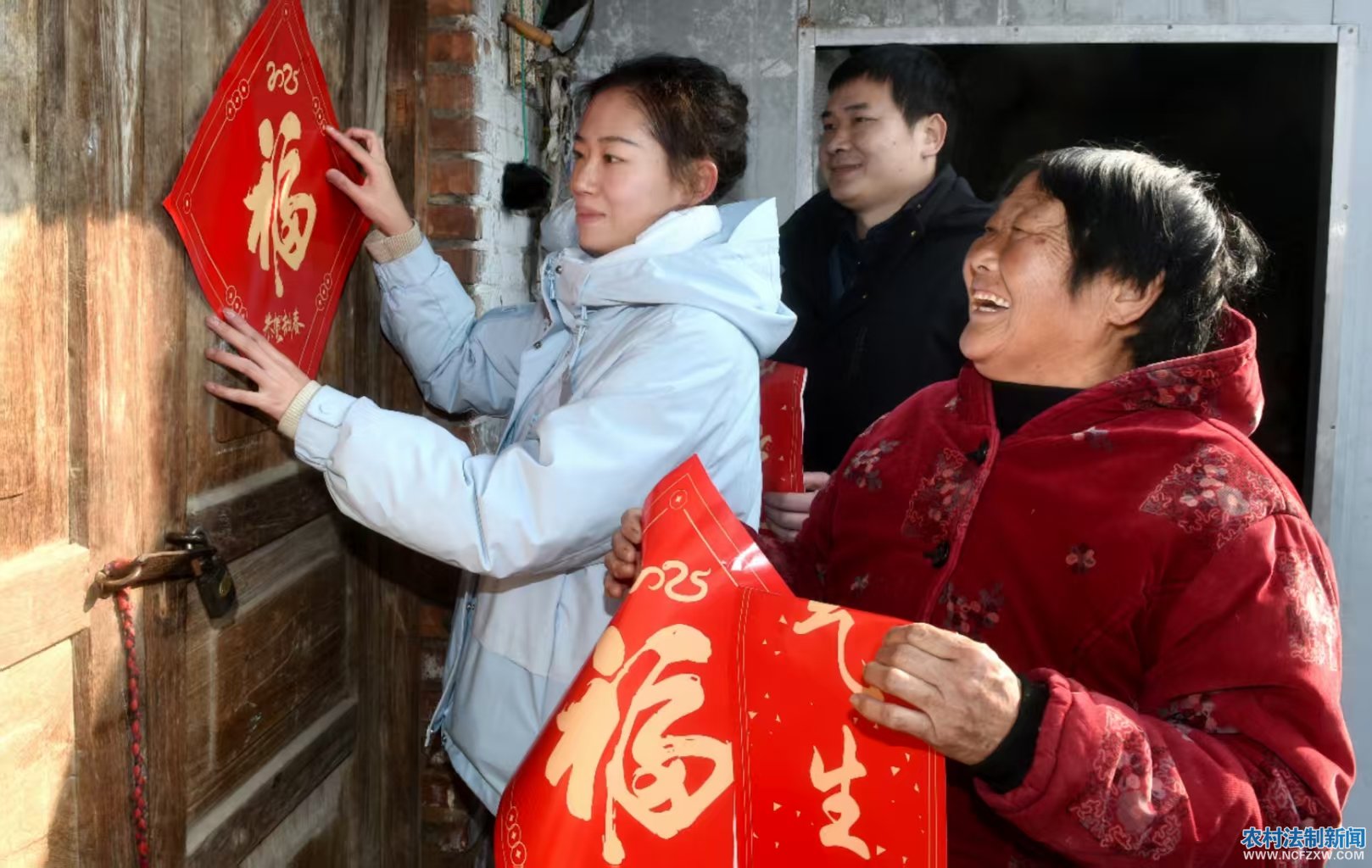 农村法制新闻网.讯 记者:燕啟超 通讯员: 陈大伟 高岩岩 张世杰 梁忠强 临近春节,为深入开展“我们的节日·欢乐中国年”文明实践活动,2025年1月21日,商丘市行政审批和政务信息管理局组织党员干部带着一片深情,来到虞城县沙集乡沙集村给困难家庭送来了米,面、油等食品,并为他们贴上春联,表达对群众的关爱和祝福。慰问中,党员干部们与其拉家常、嘘寒问暖,排忧解难,祝福群众在新的一年里幸福健康长寿。