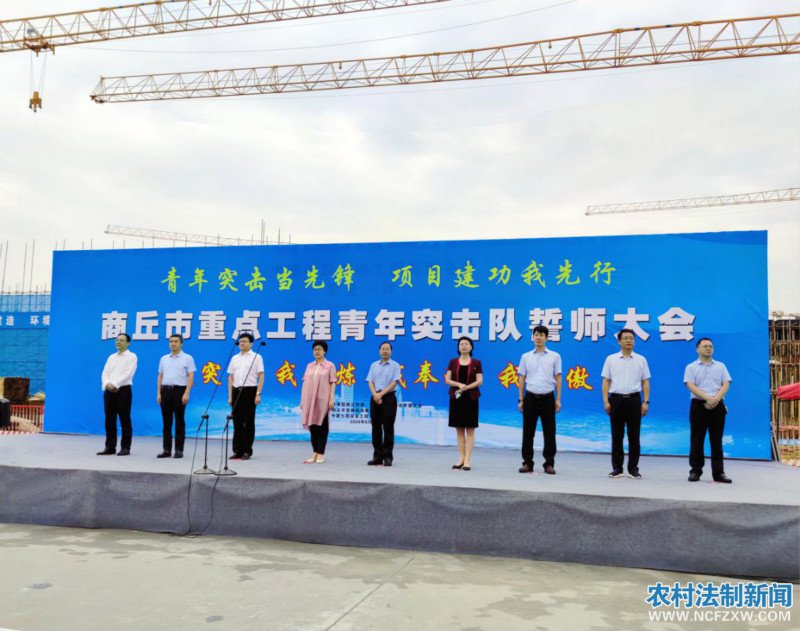 商丘市重点工程青年突击队誓师大会由共青团商丘市委、商丘市发展和改革委员会主办,商丘市发展投资集团有限公司、中建七局安装工程有限公司承办。