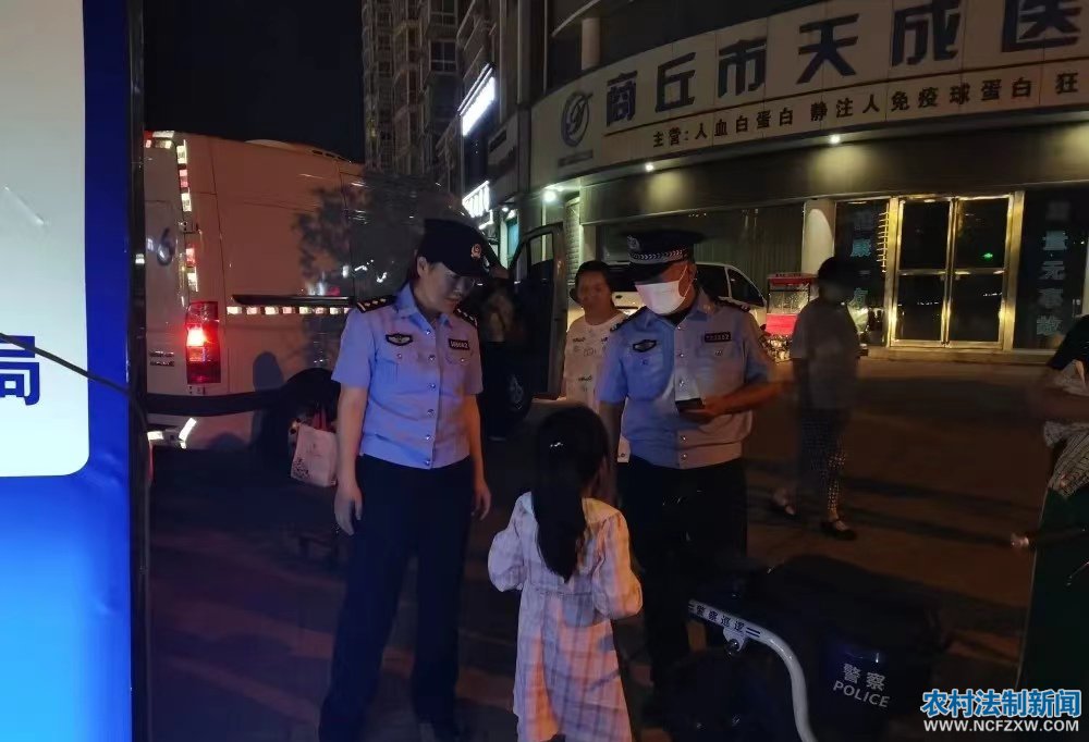 农村法制新闻网.讯 记者:燕啟超 通讯员: 王新峰 燕昊 陈大伟 高岩岩 白金中 2023年5月16日20时许,一位群众领着一小女孩到商丘市睢阳公安分局新城派出所金世纪广场消夏报警点向正在执勤的民警求助,称小女孩与妈妈走散,无法联系到其妈妈。