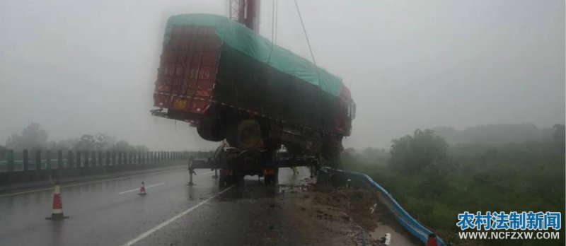 据商丘市公安局交警支队高速大队五中队中队长刘再臣介绍,当日上午11时40分许,他和中队人员焦阳、丁印阳等接到大队指挥中心指令,称商南高速公路93公里东半幅有辆大货车撞到了护栏,无法移动。刘再臣迅速赶到事故现场,民警发现几节护栏被撞得弯弯曲曲变了形,货车车头右侧也是面目全非,车辆卡在护栏上,无法移动。“如果不快速处置,湿滑的道路随时会引发二次交通事故”,民警第一时间在事故现场后方摆放安全锥桶设置警戒,在后方警戒拉响警报,提醒过路司机注意安全。同时联系施救人员,找来吊车在雨中快速施救。此时,大雨滂沱,风雨交加。民警及施救人员被淋得全身湿透。经过众人20多分钟的紧急施救,终于将半挂货车成功从中央隔离带内拖出带离高速公路,化解了这次雨中事故。司机高速民警,他姓方,山东菏泽人。驾驶鲁GW5***半挂大货车,行驶途中突遭暴雨,因视线不清采取急刹车,造成车辆失控,撞上了右侧护栏。幸亏他紧握方向盘,擦着护栏前行了20多米,才没有造成车辆侧翻或冲进高速边沟内。幸好,他受到了一番惊吓,但没有受伤。