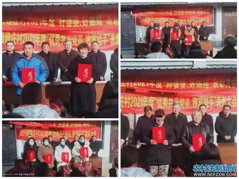 农村法制新闻网讯(记者:燕建设 通讯员:乔一丹、王景利)2021年12月31日上午,驻商丘市梁园区双八镇魏庄村工作队开展了“优秀共产党员”“最美家庭”“好婆媳、好妯娌”“致富能手”“最美环卫工人”表彰活动,倡导文明新风尚。商丘市地方史志研究室党组书记、主任马时全参加活动并为获奖者颁发荣誉证书和奖品。