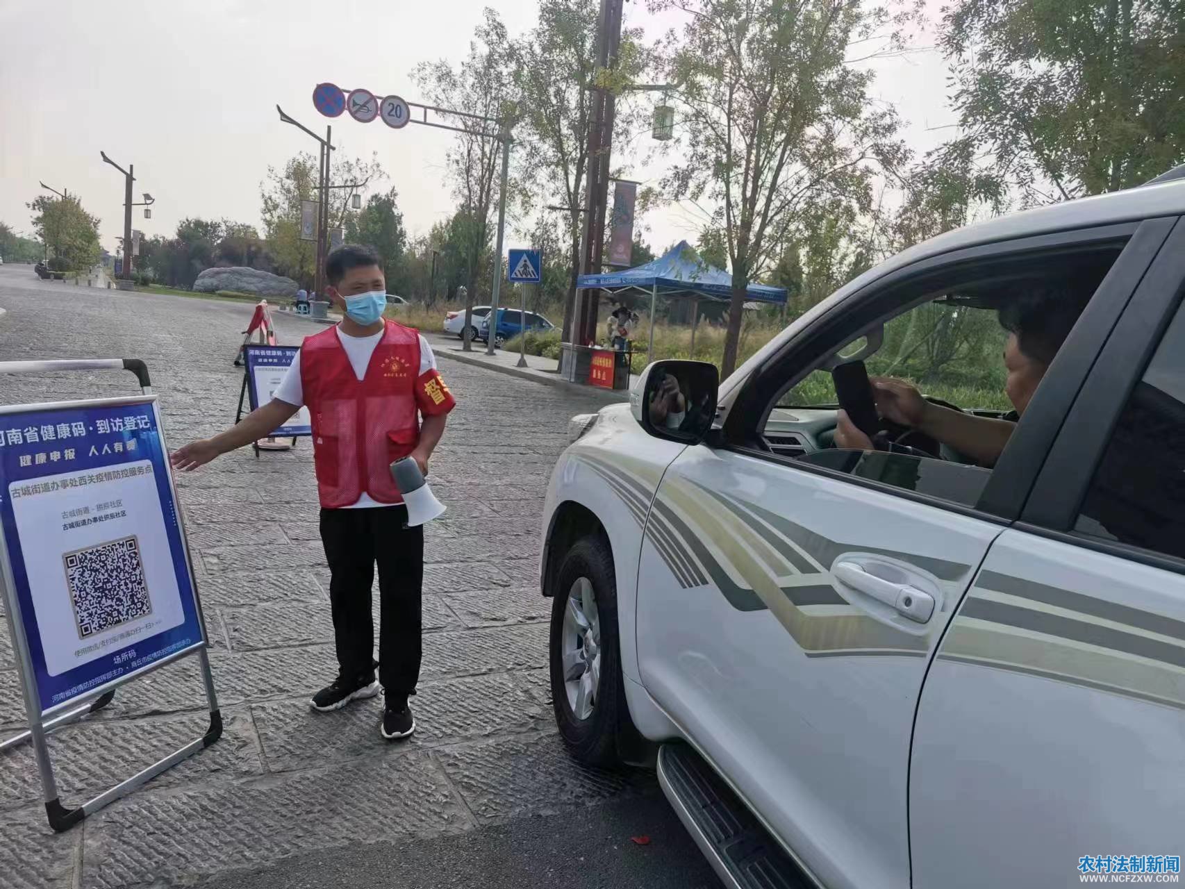 “女士您好,请佩戴口罩、出示健康码 ,配合工作人员进行体温检测 ……”“同志,古城属于交通管制区域,您驾驶的电动三轮车不能进入 ……”10月2日,在古城北关牌坊疫情防控服务点,戴着红袖标的工作人员正在有条不紊的忙碌着,他们精神饱满 、工作认真 ,有的提醒居民游客做好疫情防控,有的引导车辆行人有序通行。