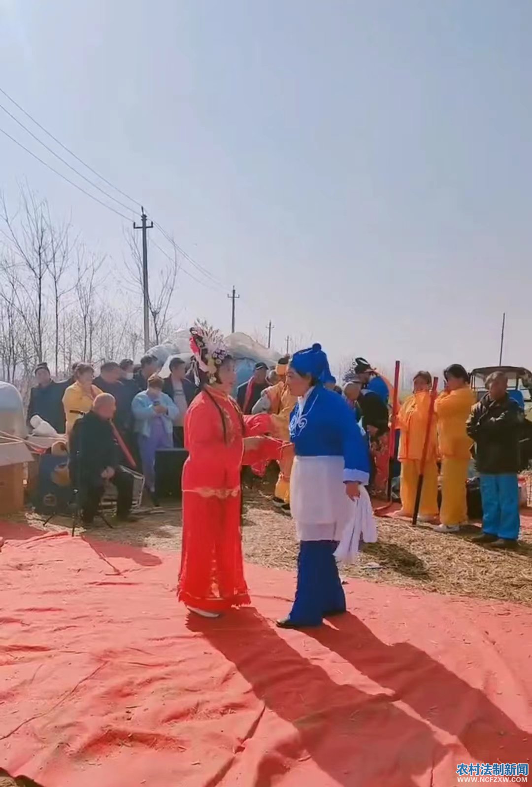 农村法制新闻网.讯 记者:燕啟超 通讯员: 刘成宏 陈大伟 高岩岩 张新民 李其光 柳泛鹅黄,春意盎然。2月25日上午,闻听农民自发组织“燕南天网红团队”为晋庄村庙会送去了精彩的文化大餐,中原高科技农副产品博览会筹委会、社会焦点与法栏目负责人和央视领导一行四人赠前往河南省商丘市睢阳区坞墙填晋庄村庙会现场进行采访并给“燕南天网红团队"送去了锦旗,以鼓励他们为文化自信和弘扬中华传统文化所做出的贡献。