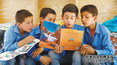 2019年7月2日,孩子们在阿富汗首都喀布尔的一个移动图书馆巴士里看书。 |