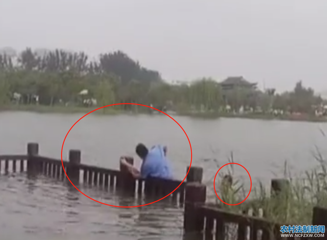 “我到现场时,看到一名妇女背靠着湖岸的木质栏杆,不远处的石头上站着女子的丈夫,两人好像在闹矛盾,”张少红告诉记者,当时由于暴雨刚过,湖水上涨的厉害,女子所站的栏杆处已经可以淹没人的腿部。情况紧急,张少红和同事赶紧向女子喊话劝阻,“我们劝阻还不到1分钟,那女的就直接跳进湖里了没影了”。