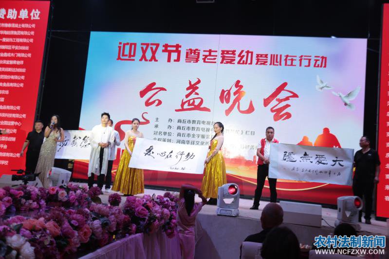 活动现场以一支欢乐的开场舞暖场,随后全体起立奏唱国歌拉开演出序幕,商丘市教育电视台副台长胡海燕、商丘市教育电视台《百姓帮忙》栏目总编孙建、商丘市金宇服装厂董事长祝东亚为活动致辞,致辞中胡海燕说:“在这个双节到来之际,商丘市教育电视台《百姓帮忙》栏目特举办了‘尊老爱幼、爱心在行动’公益活动。自教育电视台《百姓帮忙》成立以来,先后举办了教师节慰问活动,联合金伯利钻石走进校园,为数千名教师送去了鲜花和礼物。在商丘两城联创之际,联合商丘豫泰商砼爱心企业,为奋斗在一线的交警送去了水和慰问品,得到社会各界的一致好评。今天为答谢各位领导及有关部门的关爱和关心,我们在这里相聚一堂喜迎佳节,提前祝各位节日快乐,阖家幸福。”商丘市教育电视台《百姓帮忙》栏目总编孙健说,在党的正确领导下,全市人民振奋精神,艰苦创业,开拓进取,奋发图强,努力克服前进中的艰难险阻,取得了市民经济和社会发展的辉煌成就,在历届市委、市政府的带领下,坚持中央思想指导,牢固树立科学发展观,积极探索强市富民之路。商丘是教育电视台《百姓帮忙》栏目紧扣社会主题,聚焦百姓热点、解读时事政策、弘扬传统文化、帮助弱势群体、发扬慈善爱心精神,着力弘扬主旋律,为商丘又快又好的发展做出积极的贡献。商丘市金宇服装厂董事长祝东亚在致辞中表示“敬重自己的长辈,进而推广到敬重别人的长辈,抚爱自己的子女,进而推广到抚爱别人的儿女。尊老爱幼是我国优良的道德传统的精华”。
