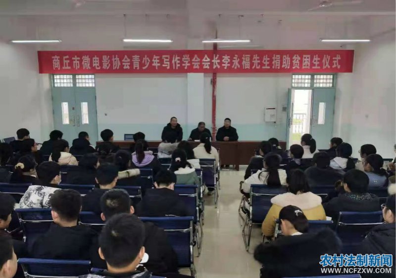 农村法制新闻网.讯(通讯员:李景丽 袁春霞) 12月28日上午,商丘市微电影协会青少年写作学会会长李永福为我校贫困学生捐赠学习卡仪式在新校区教学楼一楼会议室隆重举行。学会会长李永福,学校党委副书记、副校长马洪思,副校长杜红彪以及高一年级部分学生代表参加了捐赠仪式。仪式由杜红彪副校长主持。