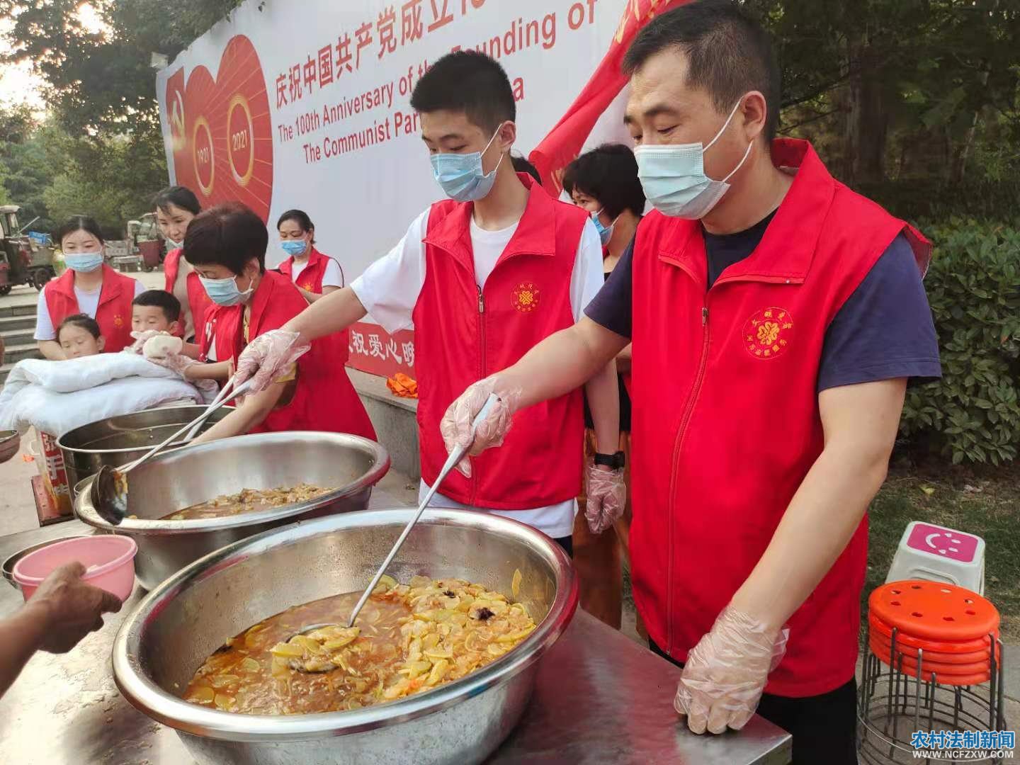 据了解,爱心晚餐于2017年6月26日开餐,志愿者达420人,运营经费全部由爱心人士、爱心团体捐赠,服务对象以环卫工人为主,以及孤寡老人、流浪人员等社会弱势群体。每天两菜一汤,鸡蛋、馒头和包子随便吃。四年来就餐达7万多人次,平均每天就餐60多人次,最多时就餐人数达107多人。当前,爱心晚餐已经成为爱心虞城的一张名片,一餐影响一座城,一餐温暖一城人。一曲《没有共产党就没有新中国》循环播放着,现场每个志愿者在不停的忙碌着......