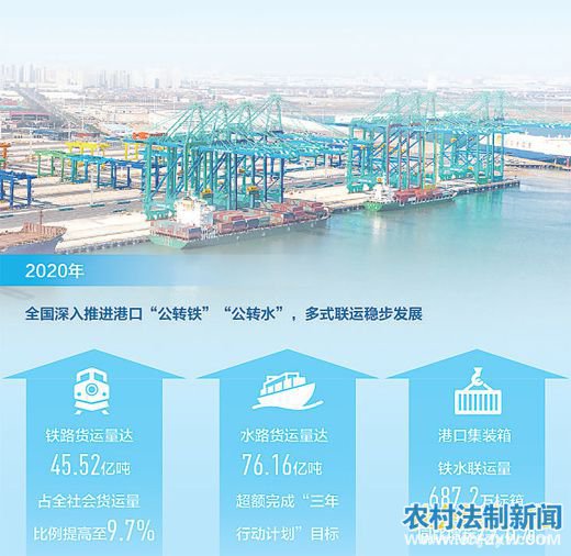近年来,我国港口“公转铁”“公转水”成效明显。到2020年底,环渤海、长三角地区等17个沿海主要港口的煤炭集港已全部改由铁路和水路运输;沿海主要港口矿石疏港采用铁路、水运和皮带机的比例达到61.3%,比2017年提高近20个百分点。