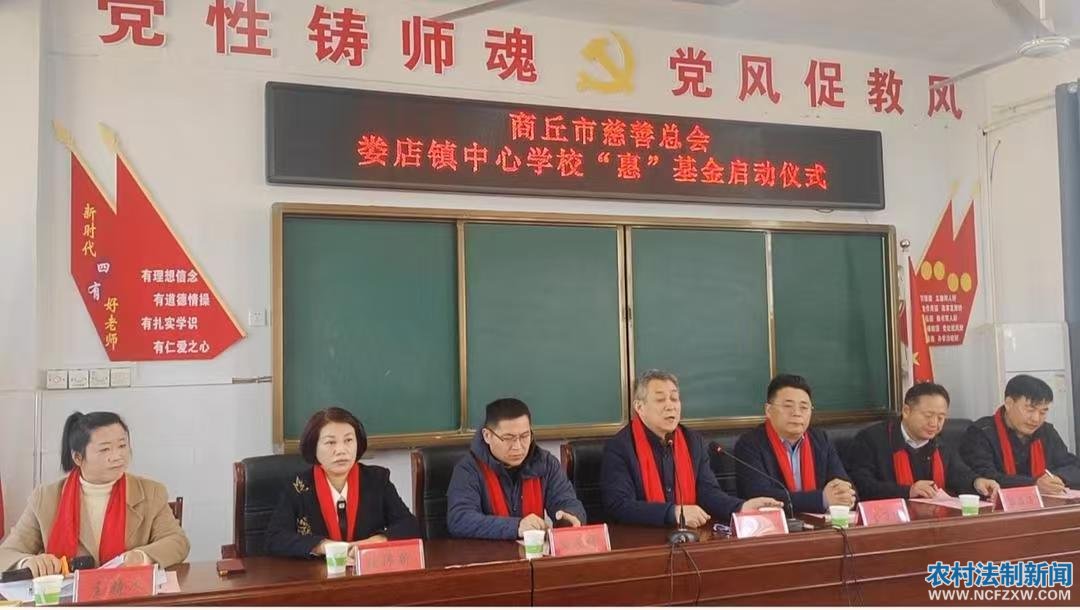 农村法制新闻网.讯 记者:燕啟超 通讯员: 梁忠强 朱启艳 张远智 邓东莲 寇长升 刘杏丽 2026年2月14日,河南商丘睢阳区娄店镇中心学校“惠”基金启动暨爱心捐赠仪式隆重举行。本次活动以“兴教助学,立德树人”为宗旨,汇聚社会各界爱心力量,助力家乡教育事业高质量发展。