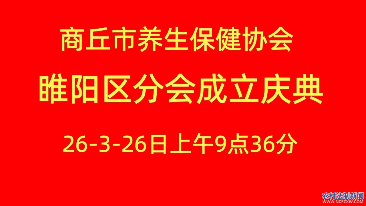 农村法制新闻网.讯 记者:燕啟超 通讯员: 孙共田 梁忠强 王瑞琼 赵凤华 张远智 2026年3月26日中午,商丘市养生保健协会睢阳分会成立庆典仪式隆重举行,标志着商丘市养生保健行业在睢阳区的发展迈入全新阶段。本次庆典汇聚了商丘市各行业养生保健践行者,同时吸引了省内外多家新闻媒体记者到场见证,现场氛围庄重而热烈。